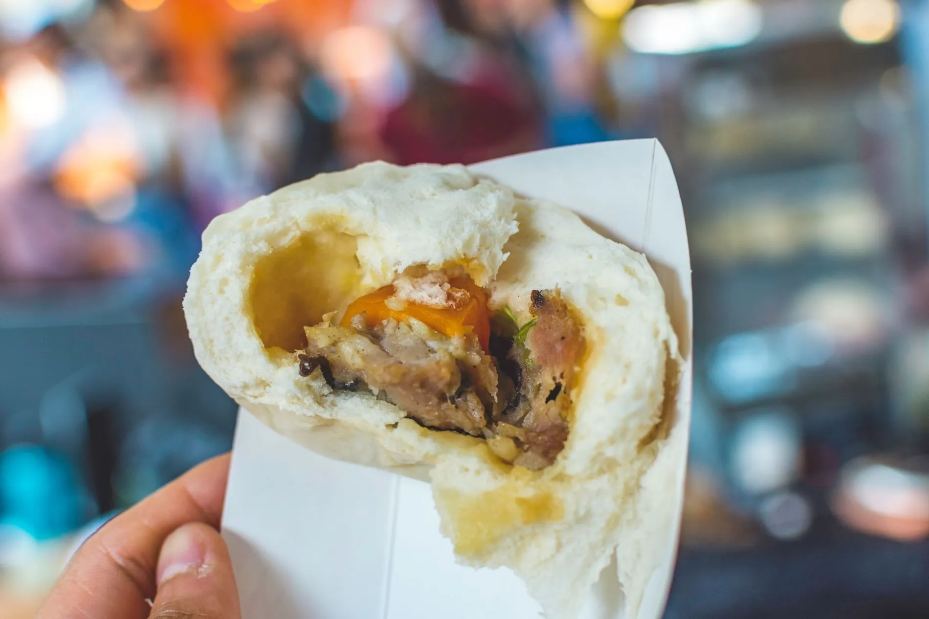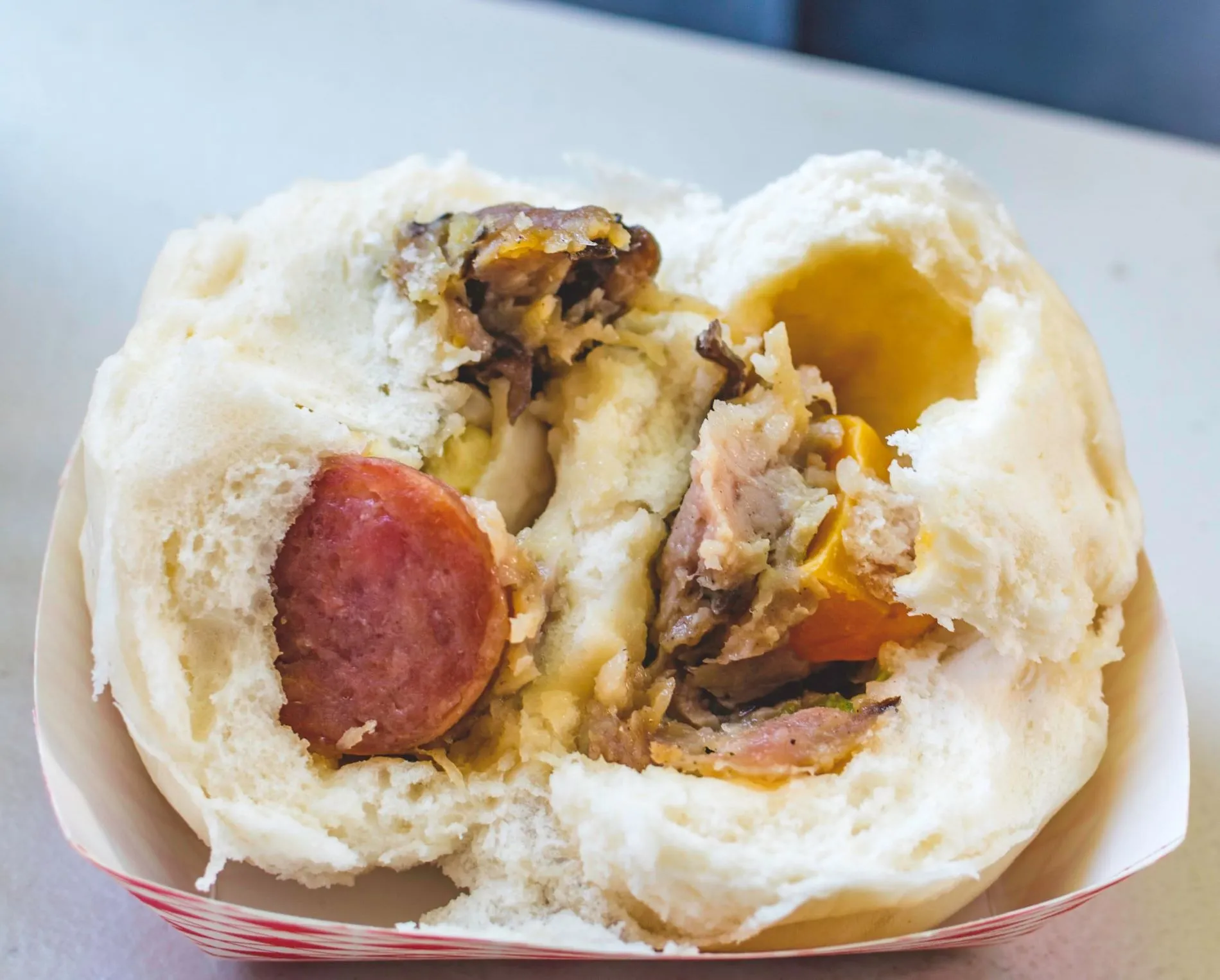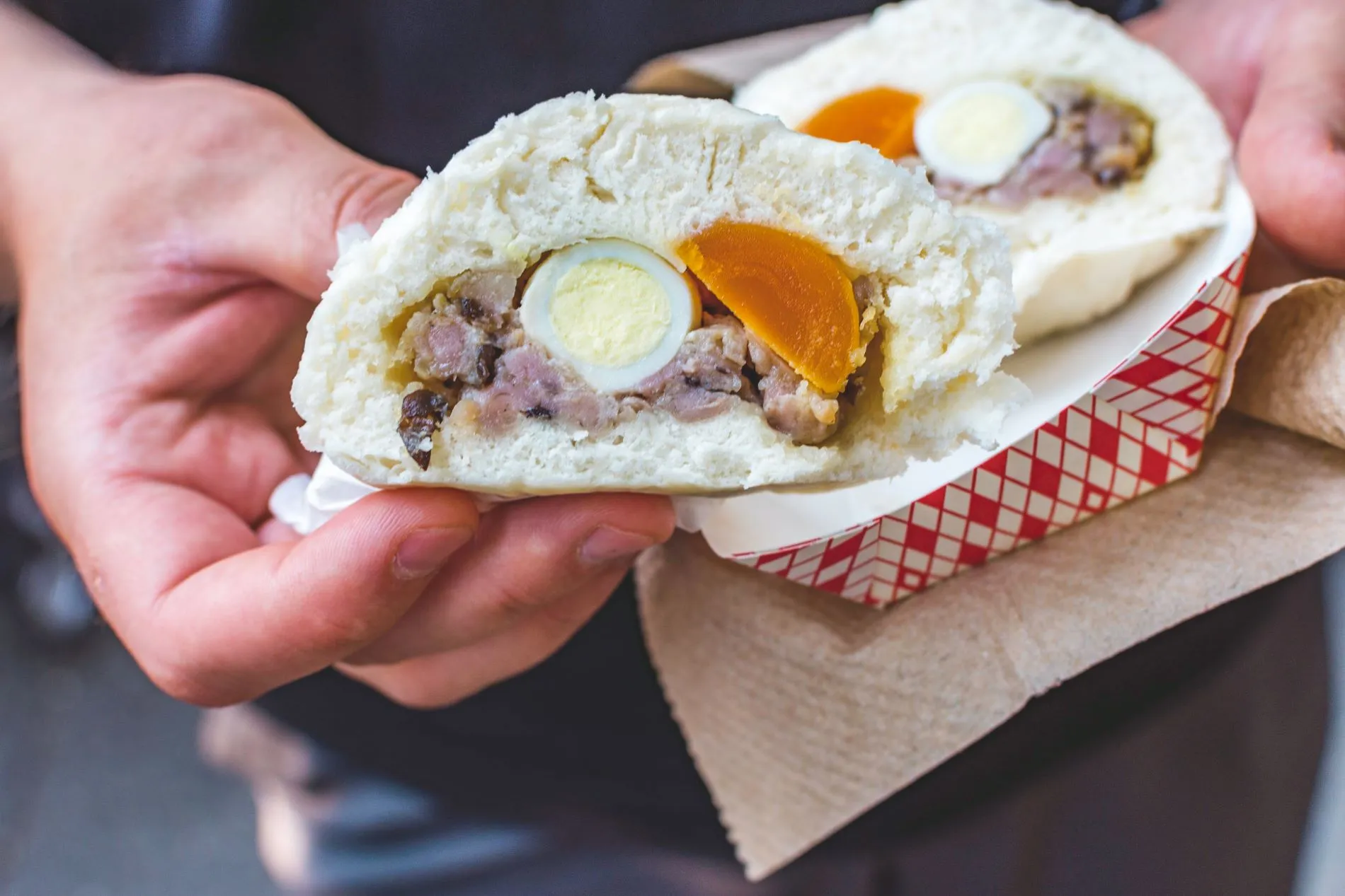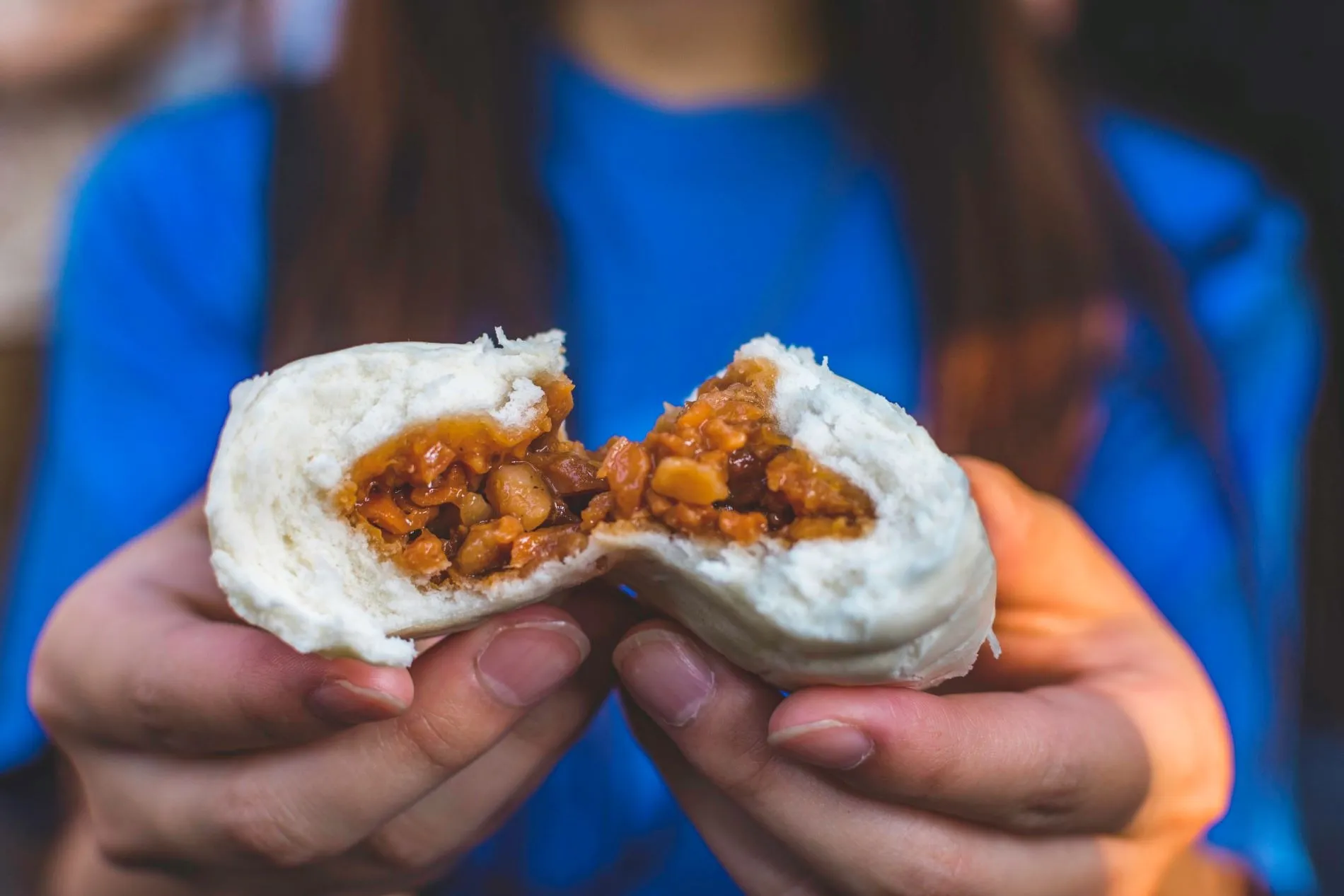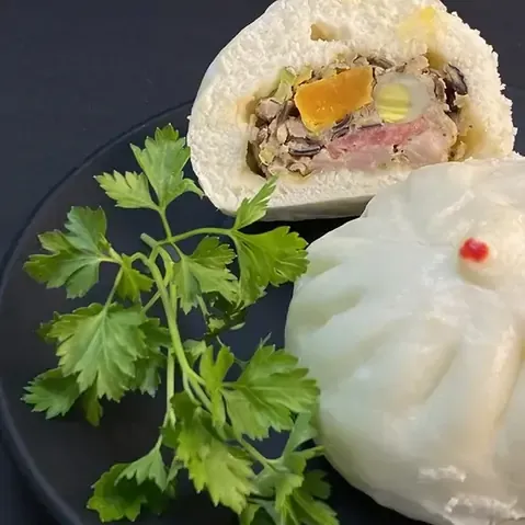 - The bao bun's crust becomes hard after being reheated in the microwave